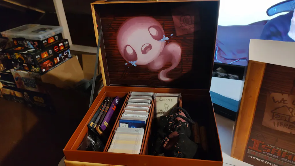 Besides that beautiful Cards, fun game(though there is a bit of a learned curve and shuffling curve). I definitely recommend looking at the extended rules as it gives a breakdown of how many cards to use per deck to making shuffling and monster difficulty more manageable. First round didn't shuffle too well and got Mega Greed and Delirium as first cards followed by Mega Satan.