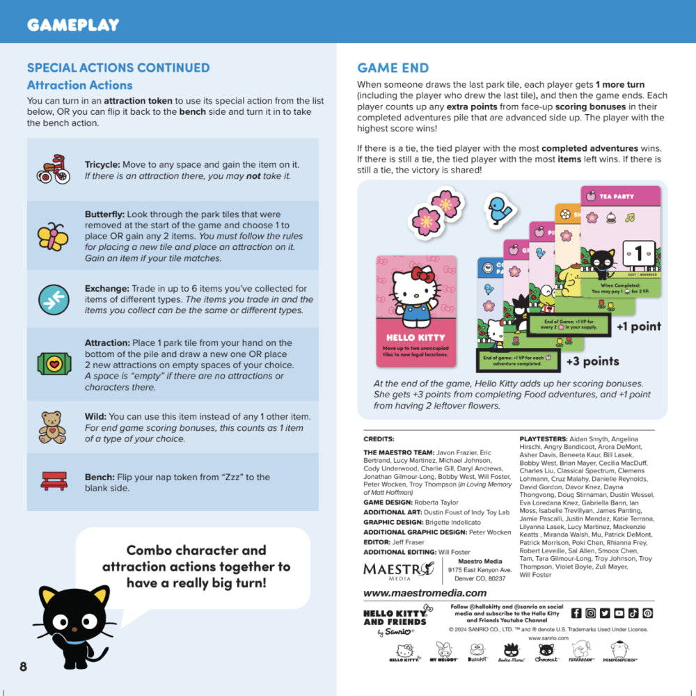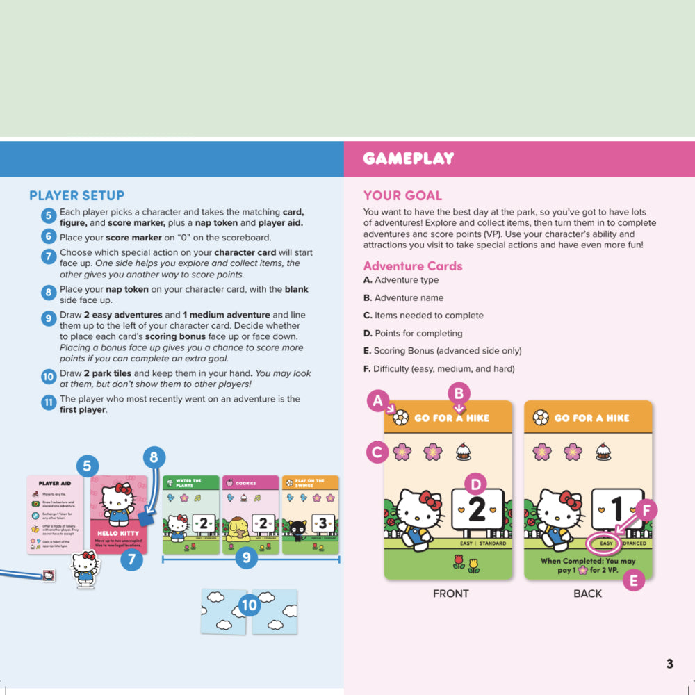Dive into the complete Hello Kitty: Day at the Park Rulebook for all the details on gameplay, setup, and special actions. Perfect for learning the ins and outs of the game, ensuring a smooth and fun-filled experience for all players!