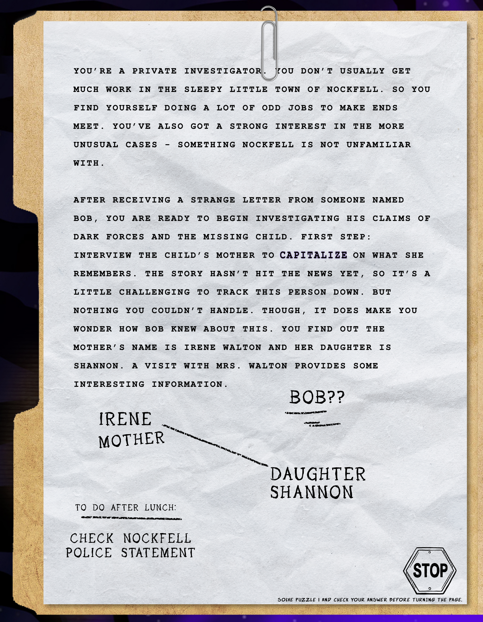 Well, you’ve got the solution but what the heck does it mean? I guess you better hold on to that information and go investigate the disappearance of the child.