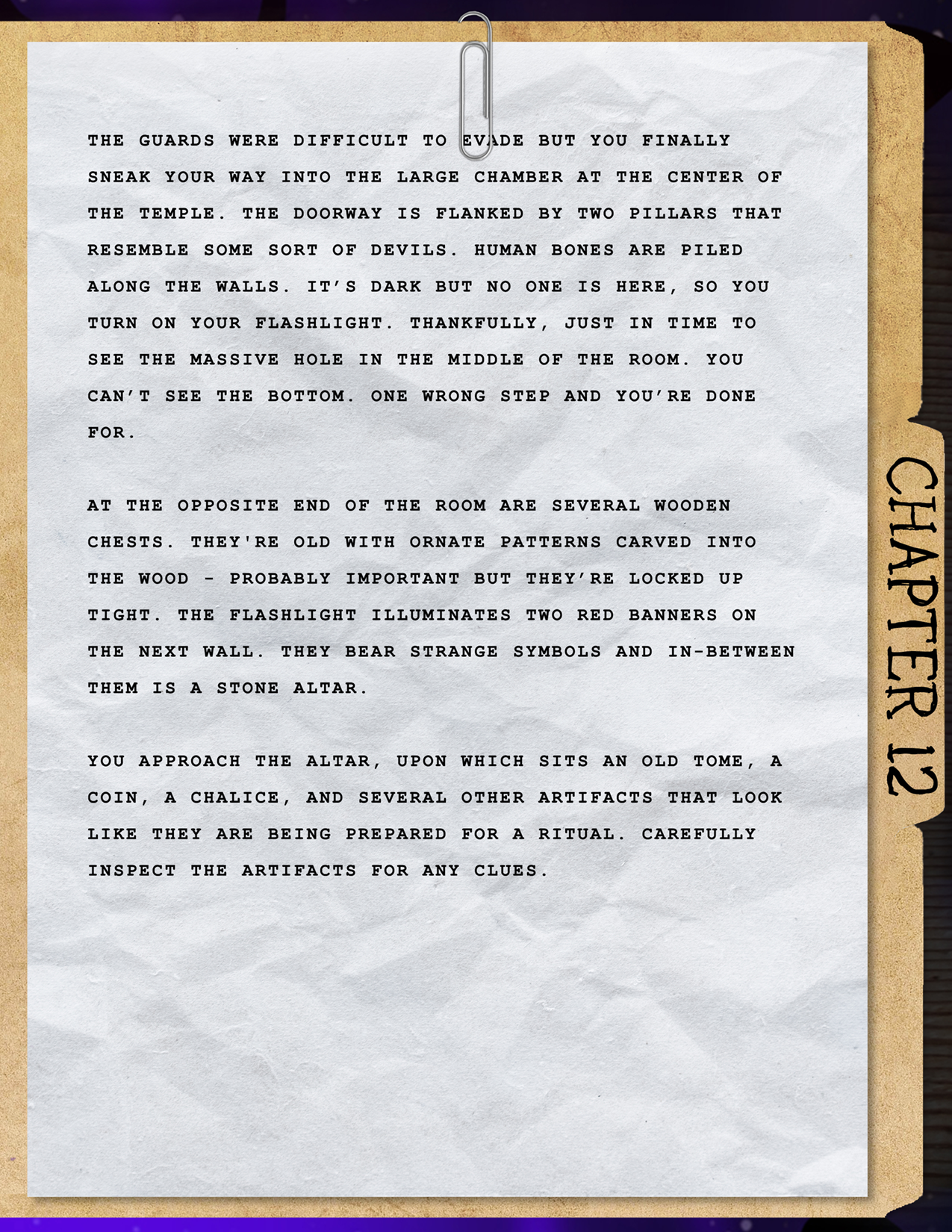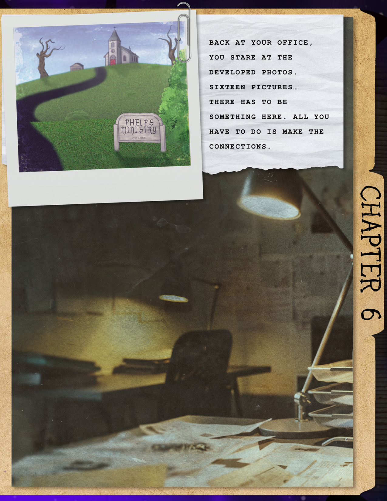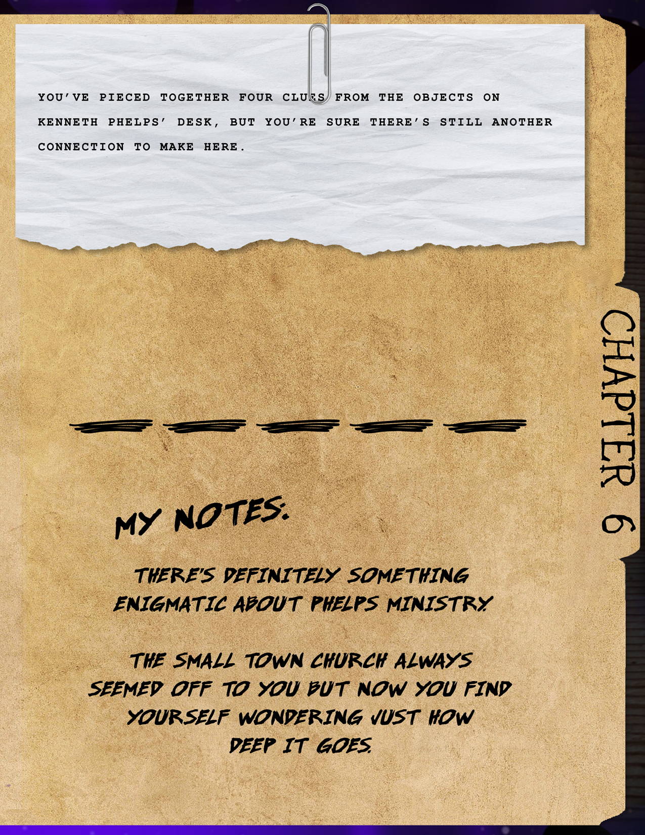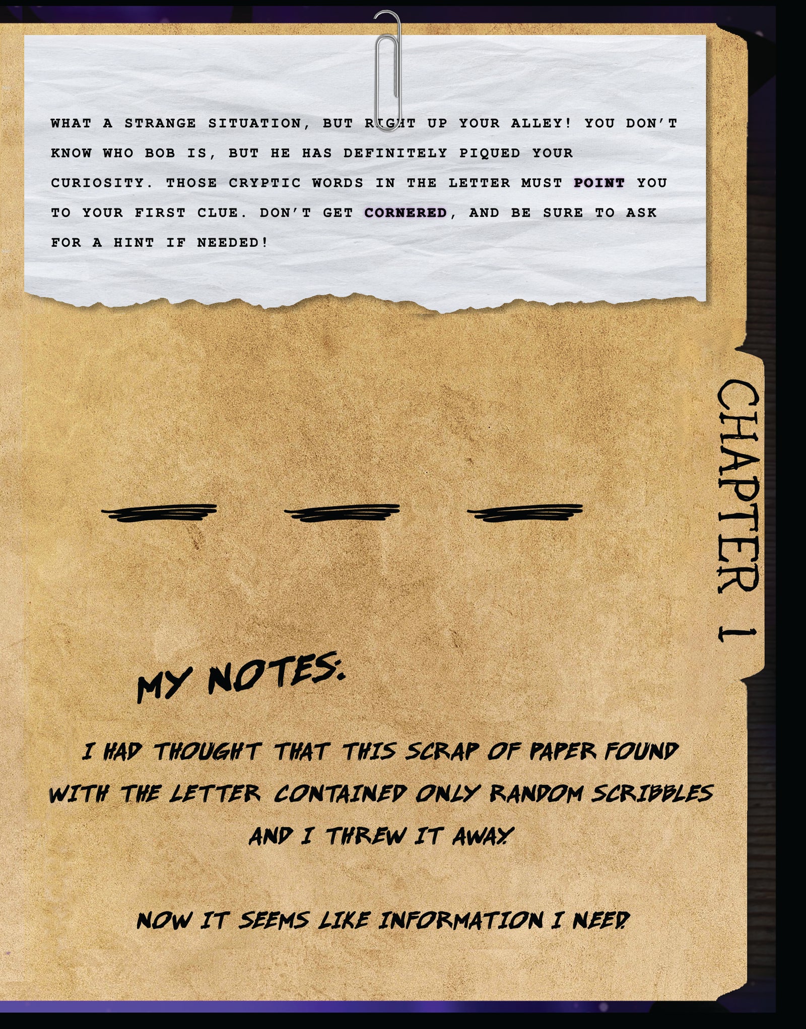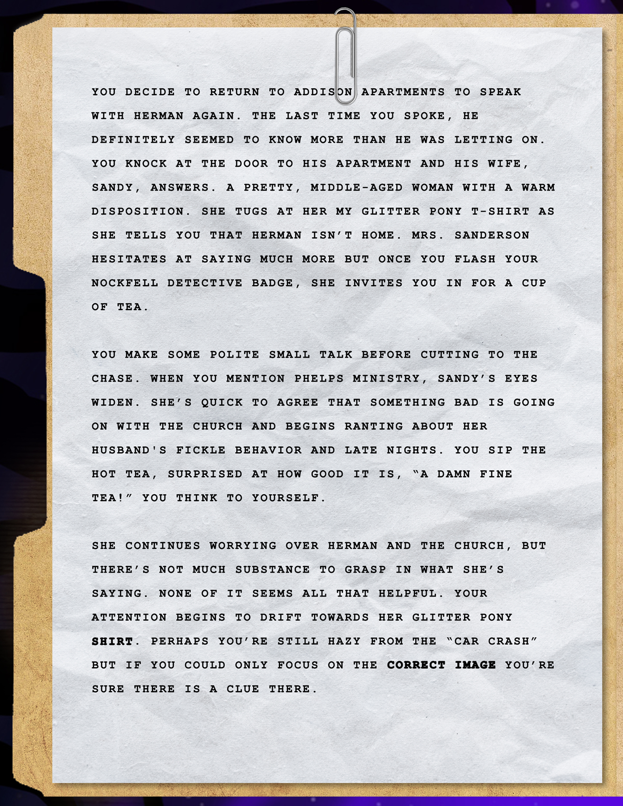 Your intuition says something big is happening here, and you’re determined to get to the bottom of it. For now, your soft pillow is calling to you. It’s been a long day. Tomorrow, you’ll search the woods yourself.