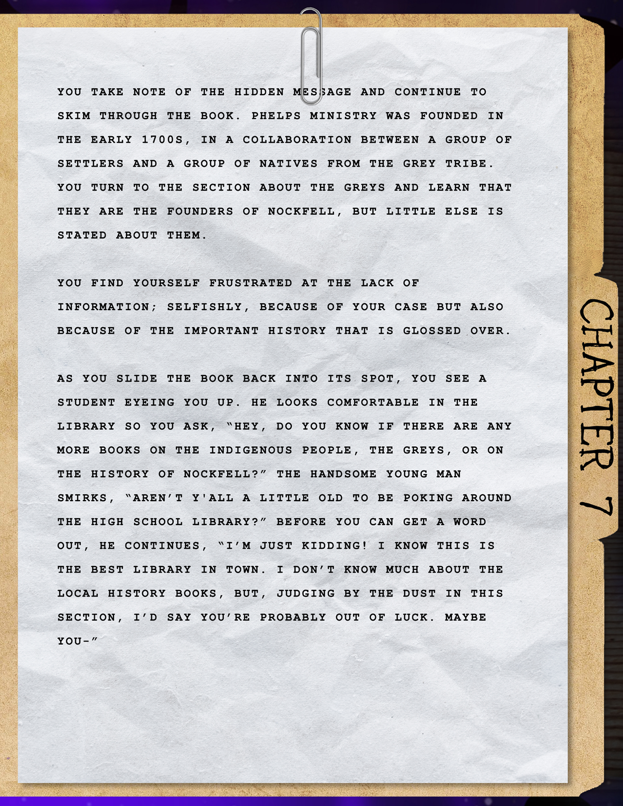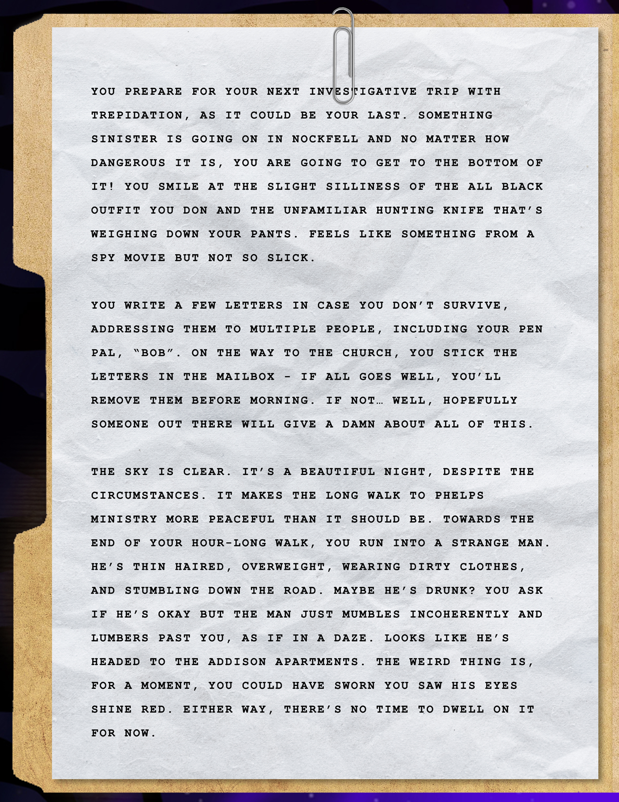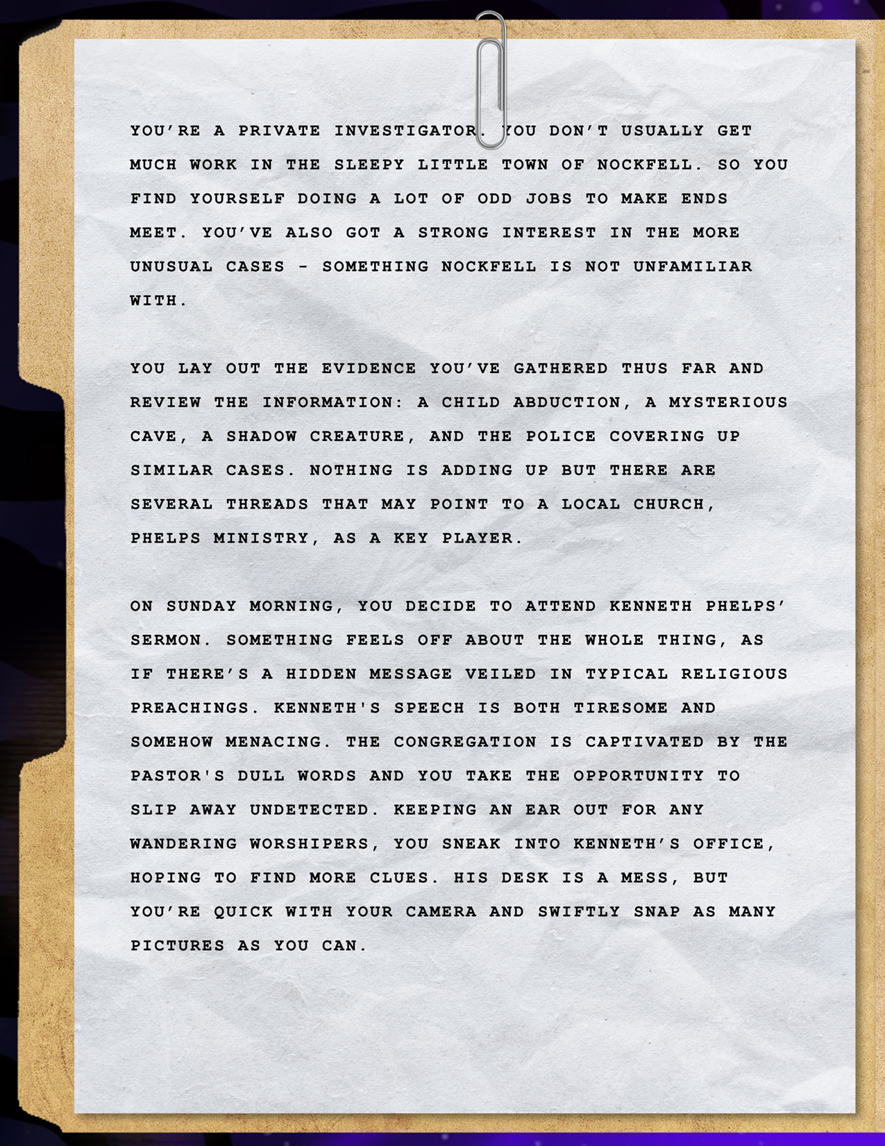 Final Story: You hack into the locked files to see several reports of missing children and creature sightings that seem to have been covered up. What is happening here? What is the source of all of this?
