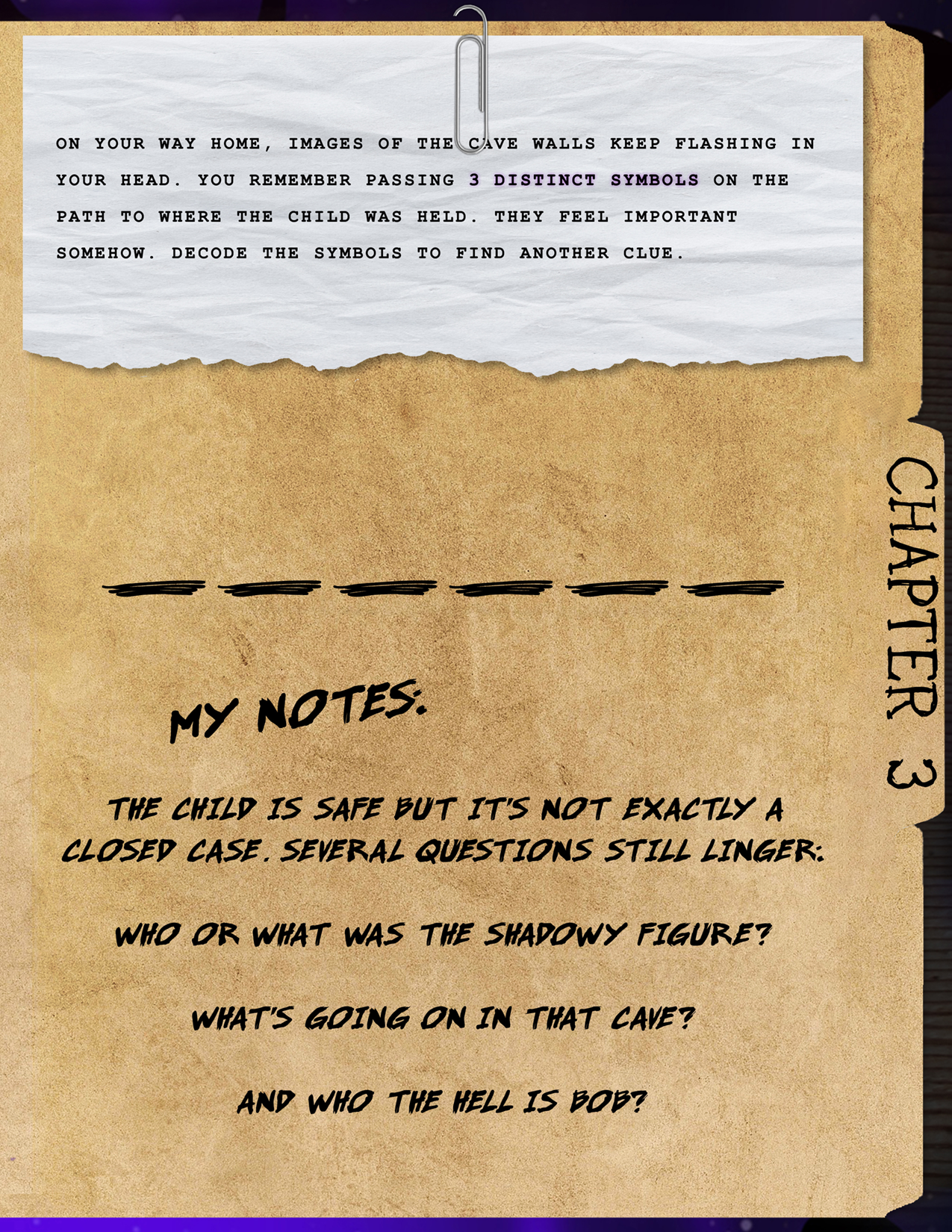 The child is safe but it’s not exactly a closed case. Several questions still linger: Who or what was the shadowy figure? What’s going on in that cave? And who the hell is Bob?