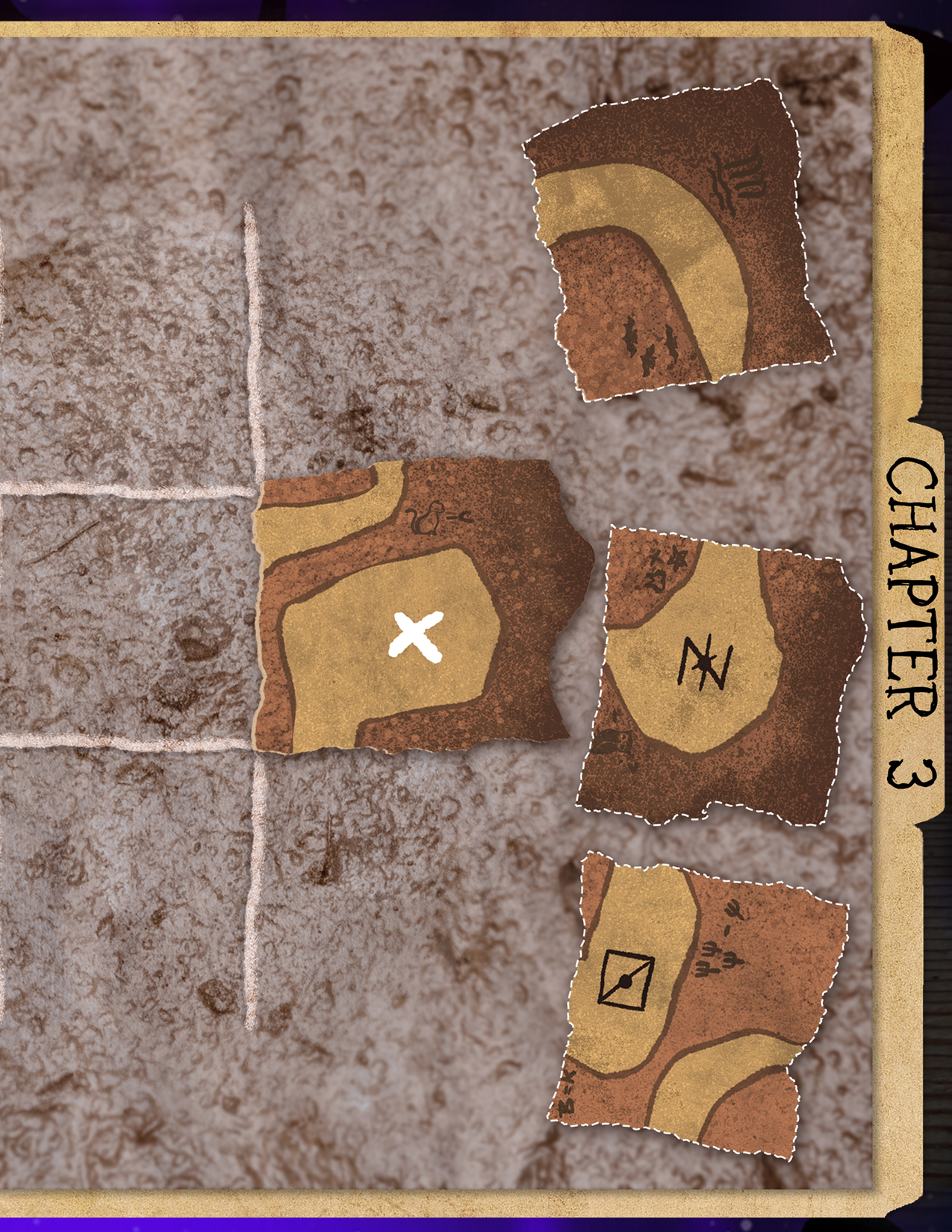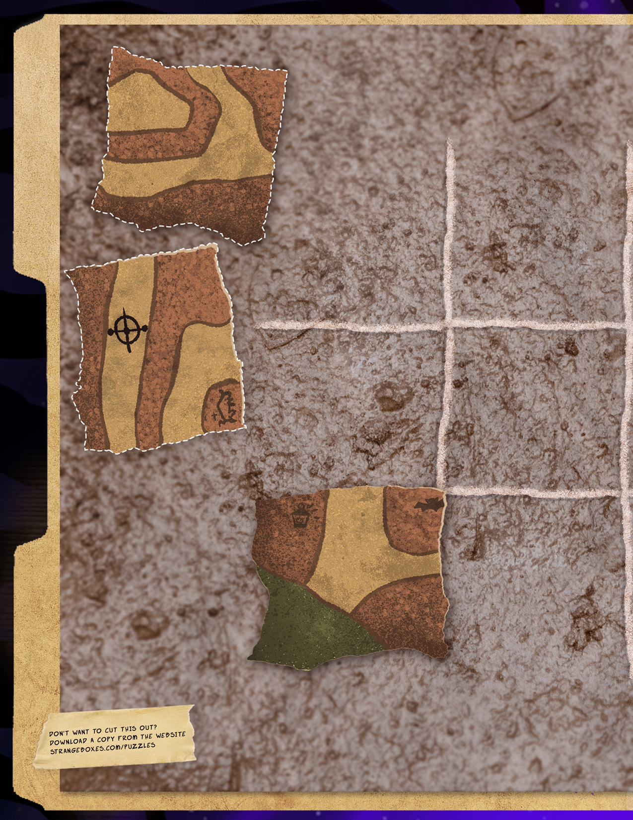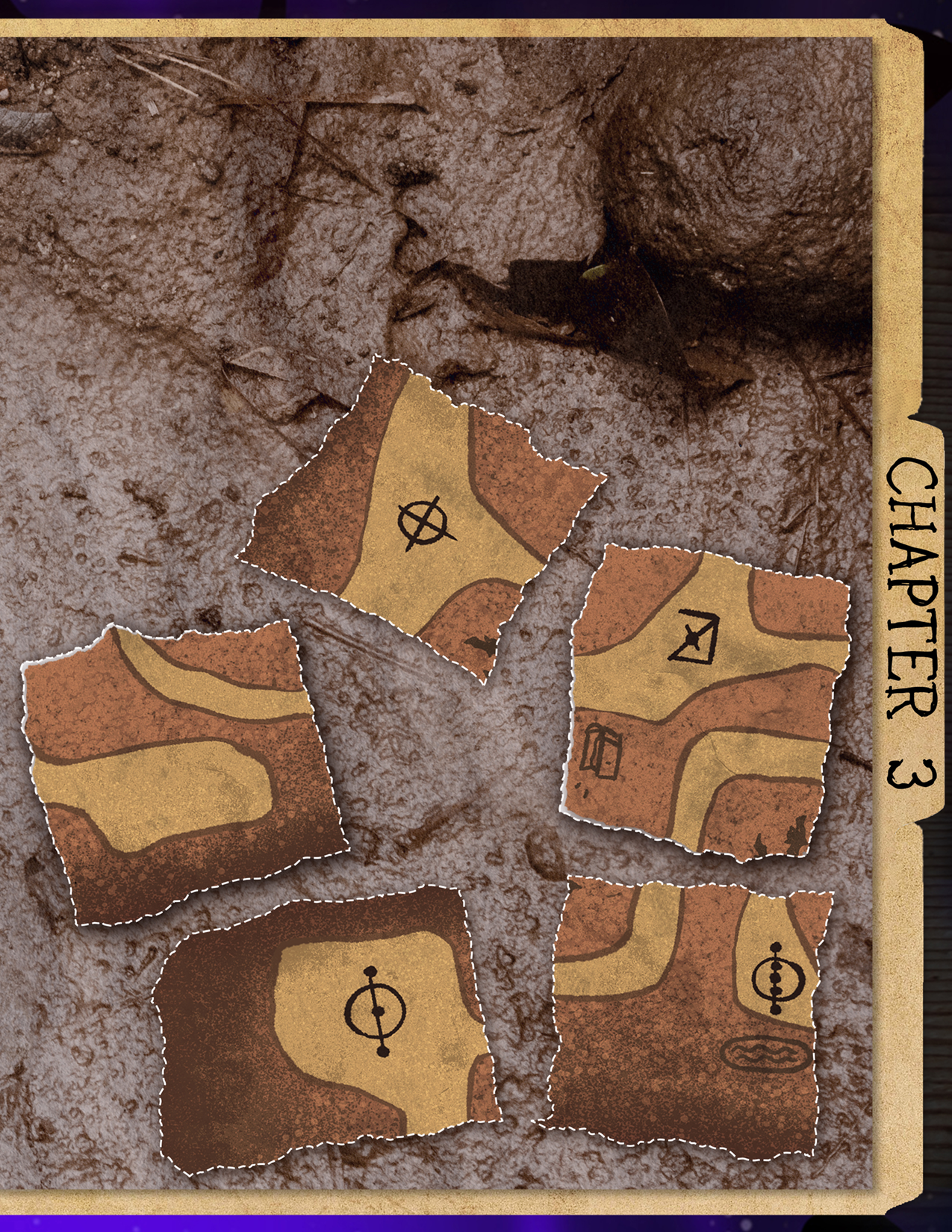 This is the final arrangement of the cave tiles: [insert picture of the completed diagram]. Following the direct route from the entrance to the final cave will pass 3 symbols. The solution is